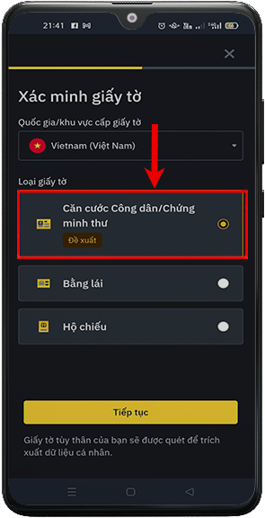 10、Chọn xác mình bằng CCCD hoặc CMT