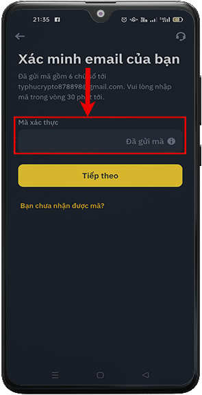 4、Nhập mã xác thực qua Email hoặc số điện thoại bạn đã đăng ký.