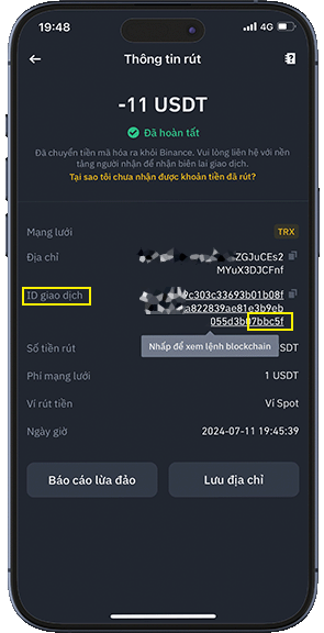 • 13、Chụp ảnh màn hình thông tin rút, chú ý 6 số cuối của ID giao dịch để xác minh.