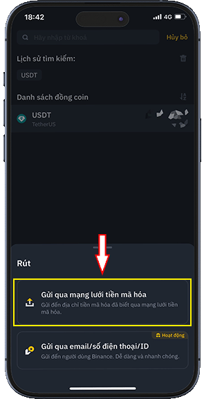 • 6、Tiếp theo chọn Gửi qua mạng lưới tiền mã hoá.