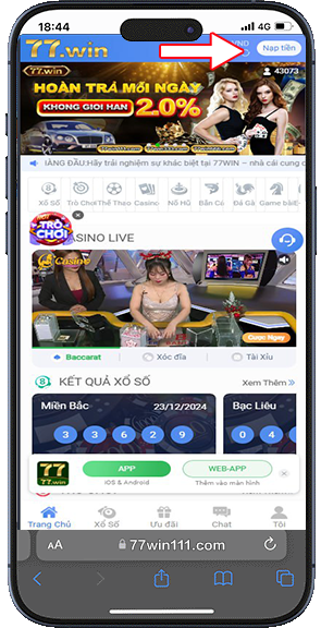 • 7、Xong vào trình duyệt trên điện thoại đăng nhập vào tài khoản 123B cần nạp tiền.