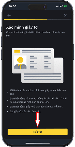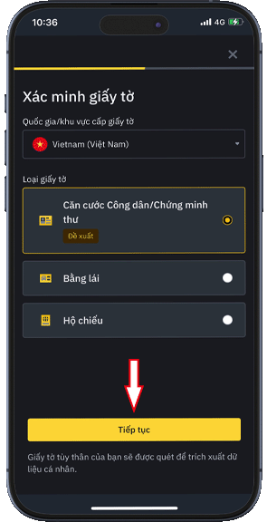 • 15、Chọn chứng từ xác minh và ấn tiếp tục.