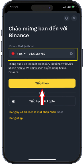 • 5、Nhập số điện thoại và ấn tiếp theo.