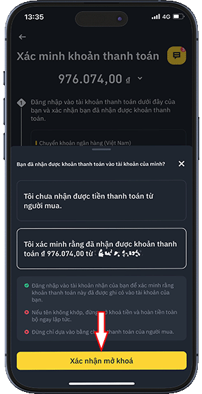 • 15、Ấn tiếp vào mục Xác nhận mở khoá để kết thúc giao dịch.
