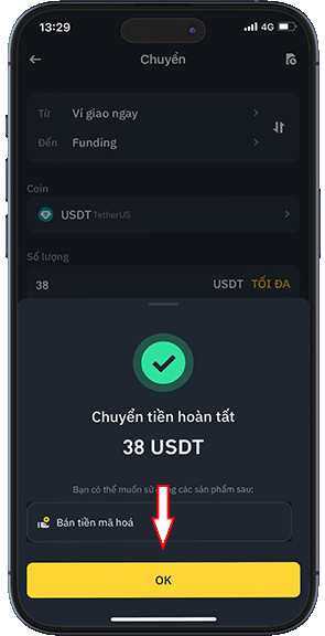• 11、Kiểm tra lại số lượng USDT và ấn xác nhận.