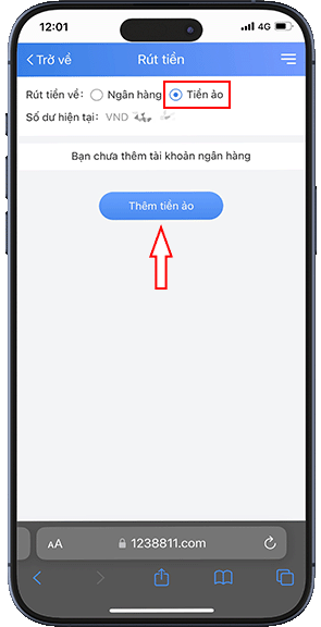 • 7、Chọn Tiền ảo, sau đó bấm Thêm tiền ảo.